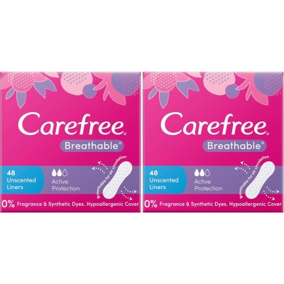 Carefree Breathable Unscented Panty Liners 96 pack| Body-contoured shape| Cottony-soft cover