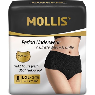 MOLLIS Disposable Period Underwear for Women,Black,Large/Xlarge, 8 Count